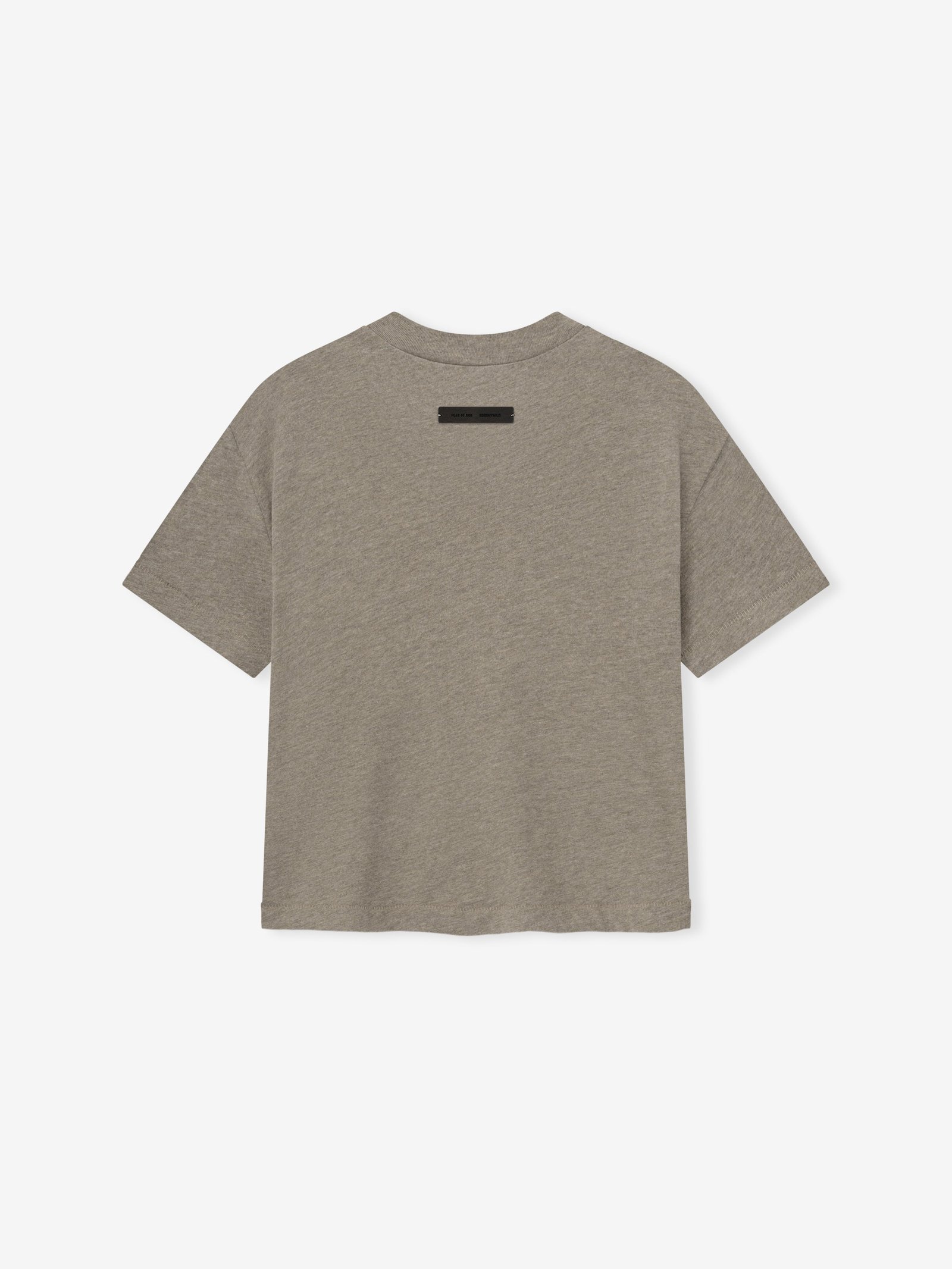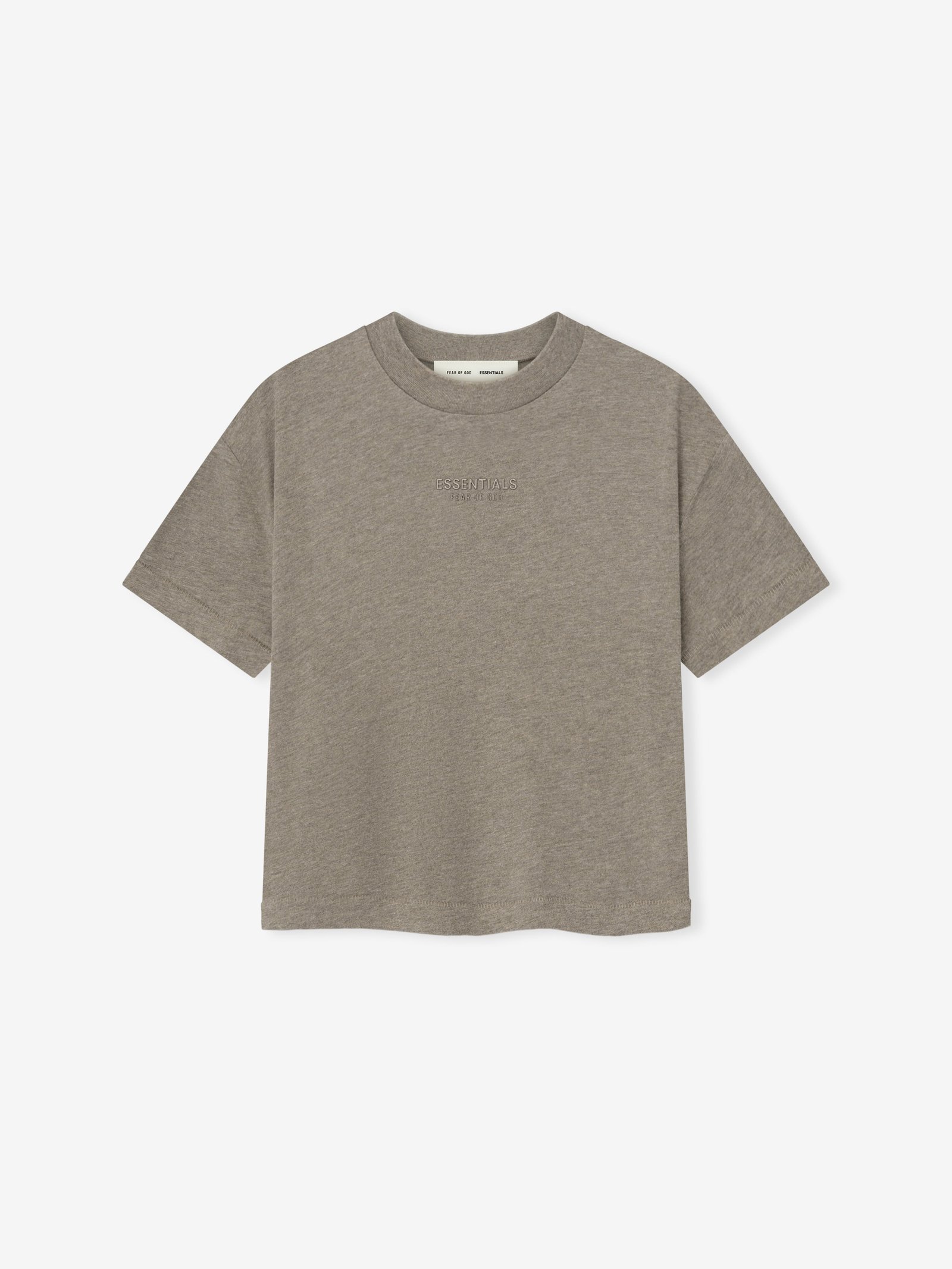 The Womens Classic Tee is made of a tri-blend jersey for a softer feel. The rib-knit crewneck tee features a relaxed fit in the body. Branding includes a “Essentials Fear of God” beveled metallic logo on the front and “Fear of God Essentials” rubberized label located at the back collar.
