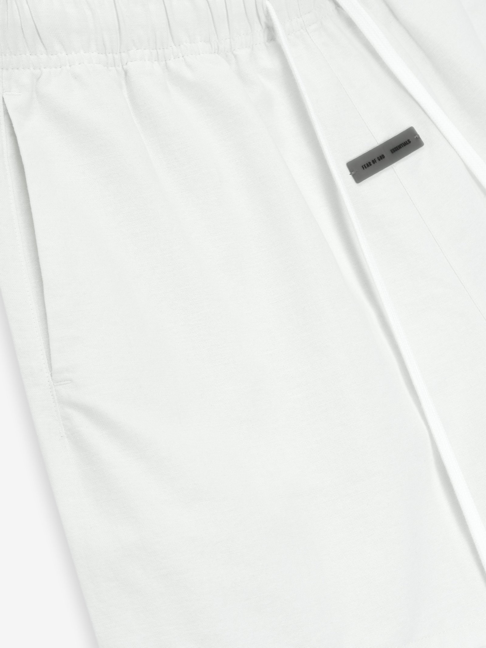 The Womens Classic Short is crafted from 100% cotton Oxford cloth for lightweight comfort. The short is designed to have a mid-length and a rounded, feminine contour. Key features include side pockets and an encased elastic waistband with drawstrings. Additionally, a Fear of God Essentials rubberized label is positioned at the center front.
