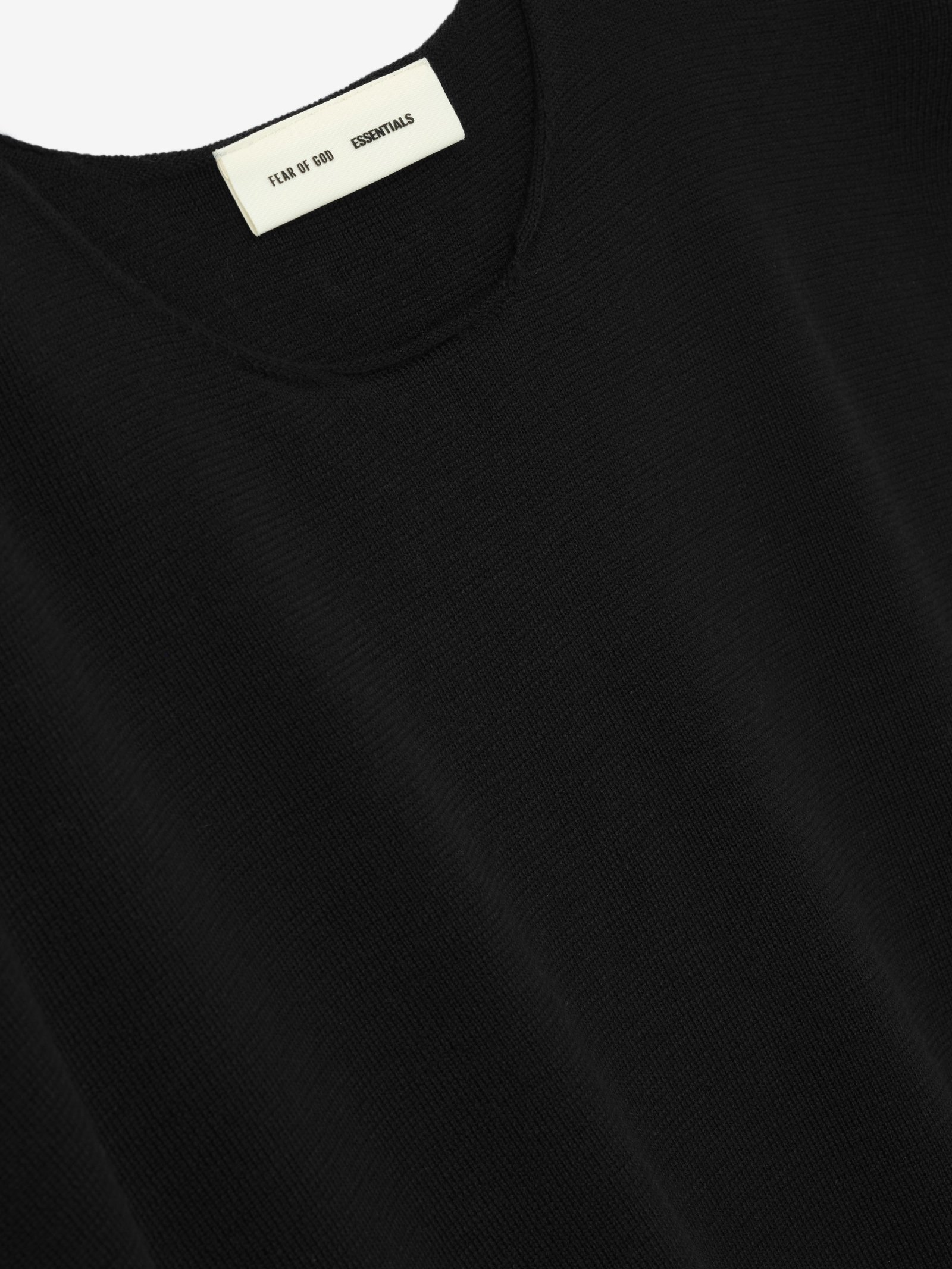 The Merino Long Sleeve Crewneck Sweater is made from 100% merino wool. The fit is relaxed with drop shoulders, rib-knit cuffs and waist hem. Additionally, a Fear of God Essentials rubberized label is stitched at the back collar.