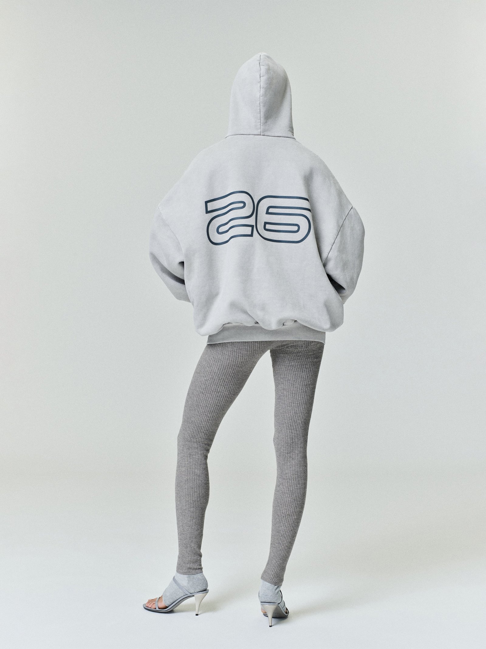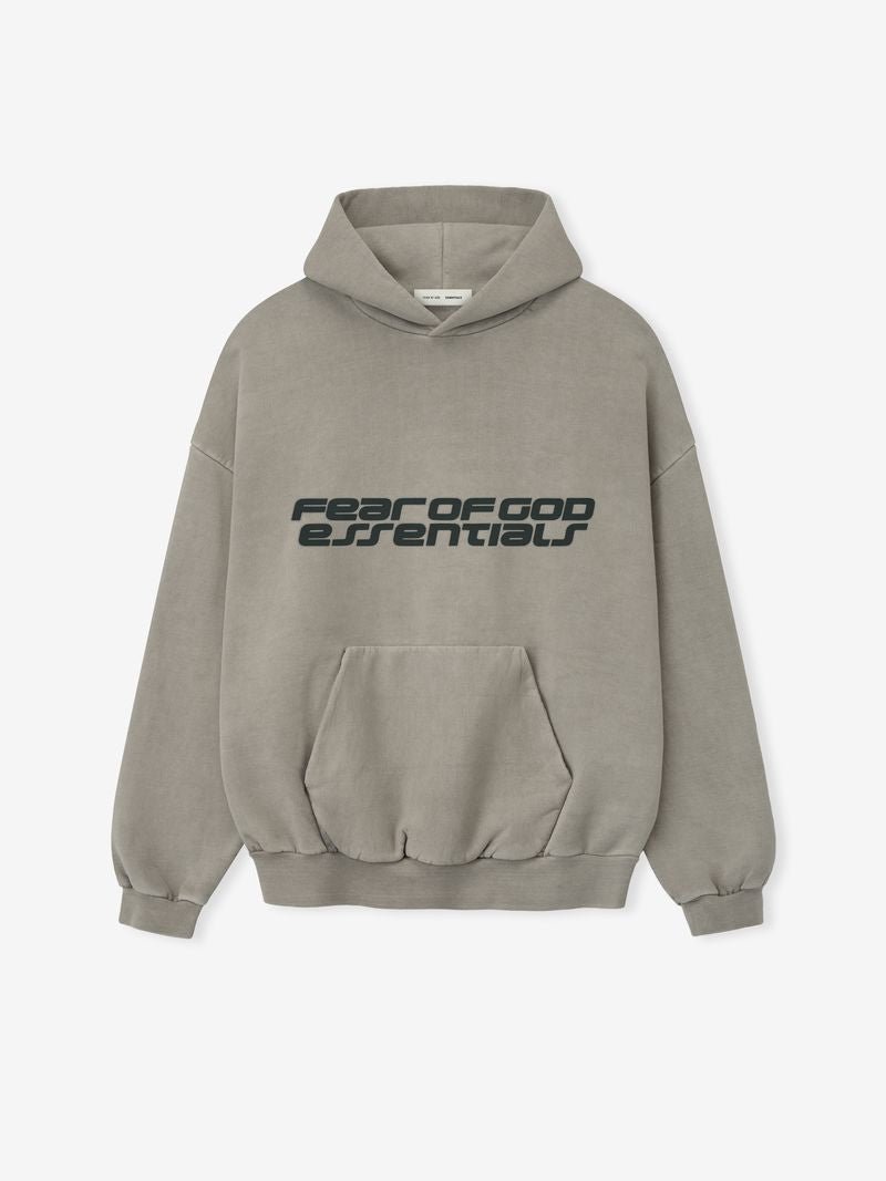The Heavy Fleece Hoodie is crafted from 520gsm heavy fleece and treated with a pigment dye to create rich depth of color. Designed in an oversized 90s-inspired silhouette, it features exaggerated proportions with dropped shoulders for a relaxed drape. The hoodie is defined by HD-printed graphics—“Fear of God Essentials” logo on the front and “26” on the back. Finishing details include a kangaroo pocket, rib-knit cuffs, waist-hem and a Fear of God Essentials rubberized label stitched on the hood.