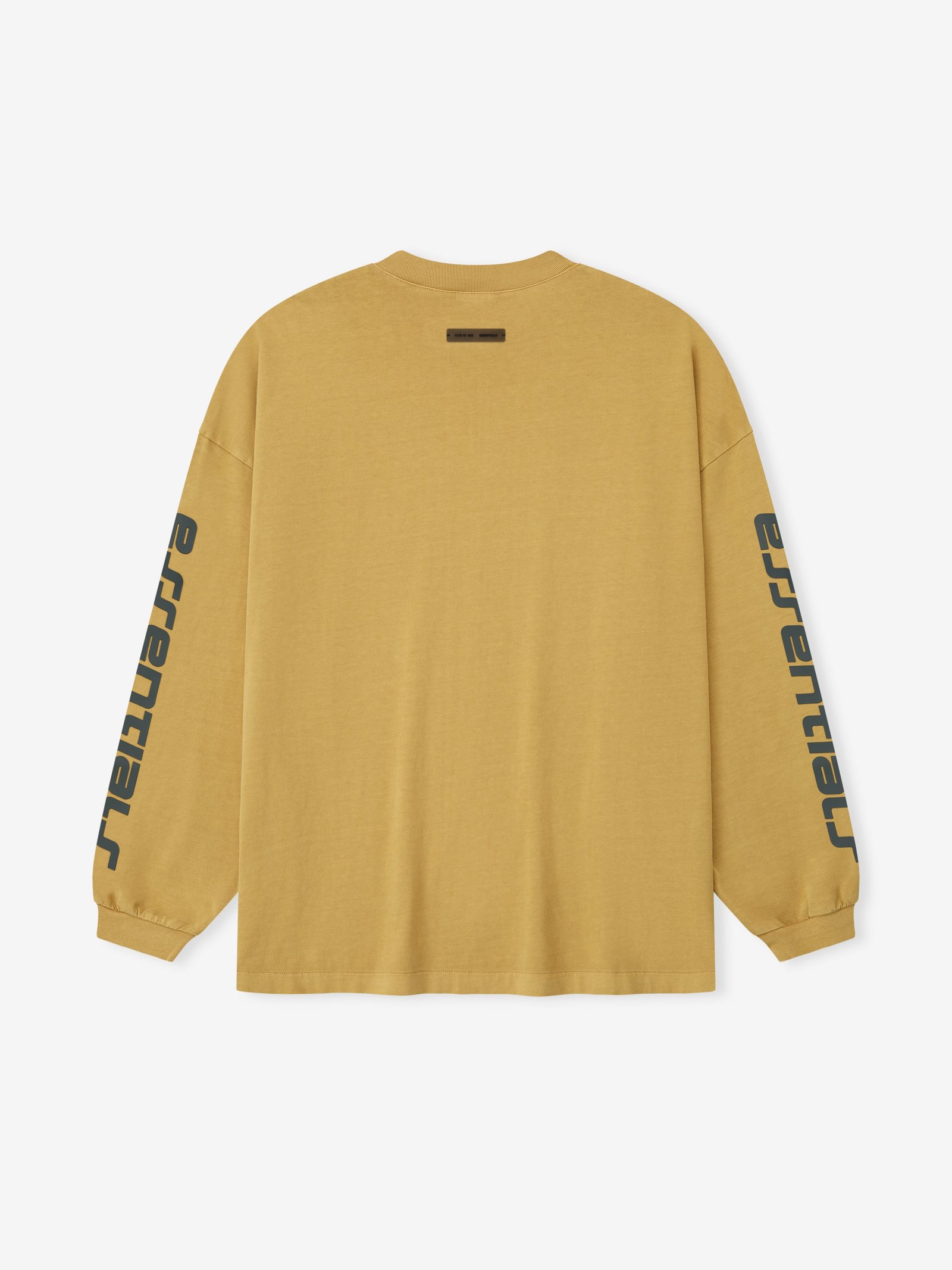 The 90s Long Sleeve Tee is made from 100% cotton jersey, offering a soft yet substantial hand feel. Designed in an oversized 90s-inspired silhouette, it features exaggerated proportions with dropped shoulders for a relaxed drape that tapers to rib-knit cuffs. The front is defined by a HD print application of the Fear of God Essentials lockup alongside the Essentials logos on the sleeves. The signature rubberized Fear of God Essentials label at the collar.