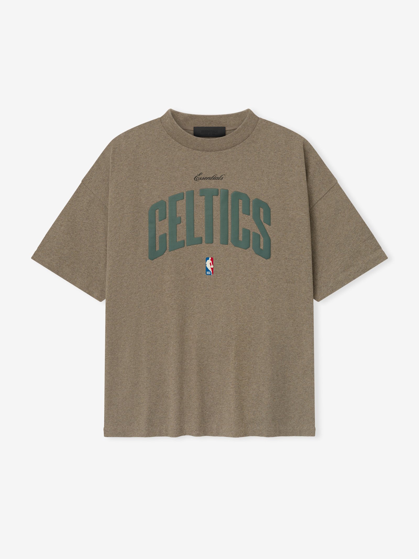 The Celtics 90s Tee is cut from 100% cotton heavy jersey, offering a soft yet substantial hand feel. Designed in an oversized 90s-inspired silhouette, it features exaggerated proportions with dropped shoulders for a relaxed drape. The front is defined by a puff-print application of the “ESSENTIALS CELTICS” lockup alongside the NBA insignia.. The signature rubberized Fear of God Essentials label at the collar.
