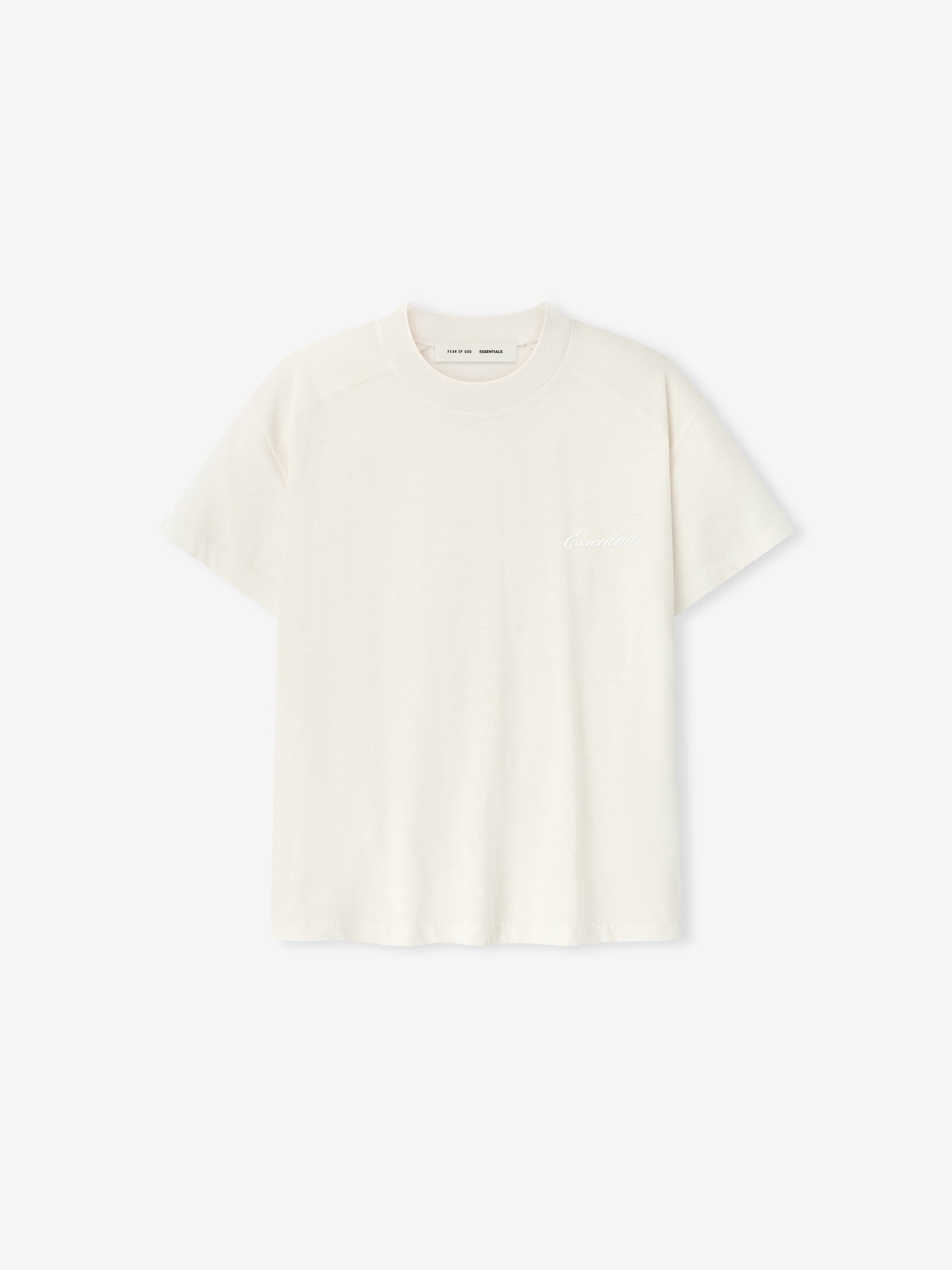 The Women’s Classic Tee is crafted from lightweight core jersey for an airy, loungewear feel. Designed with a relaxed fit through the body, the tee is finished with a rib-knit crewneck. Branding details include an embroidered script “Essentials” logo on the front and a Fear of God Essentials label at the back collar.