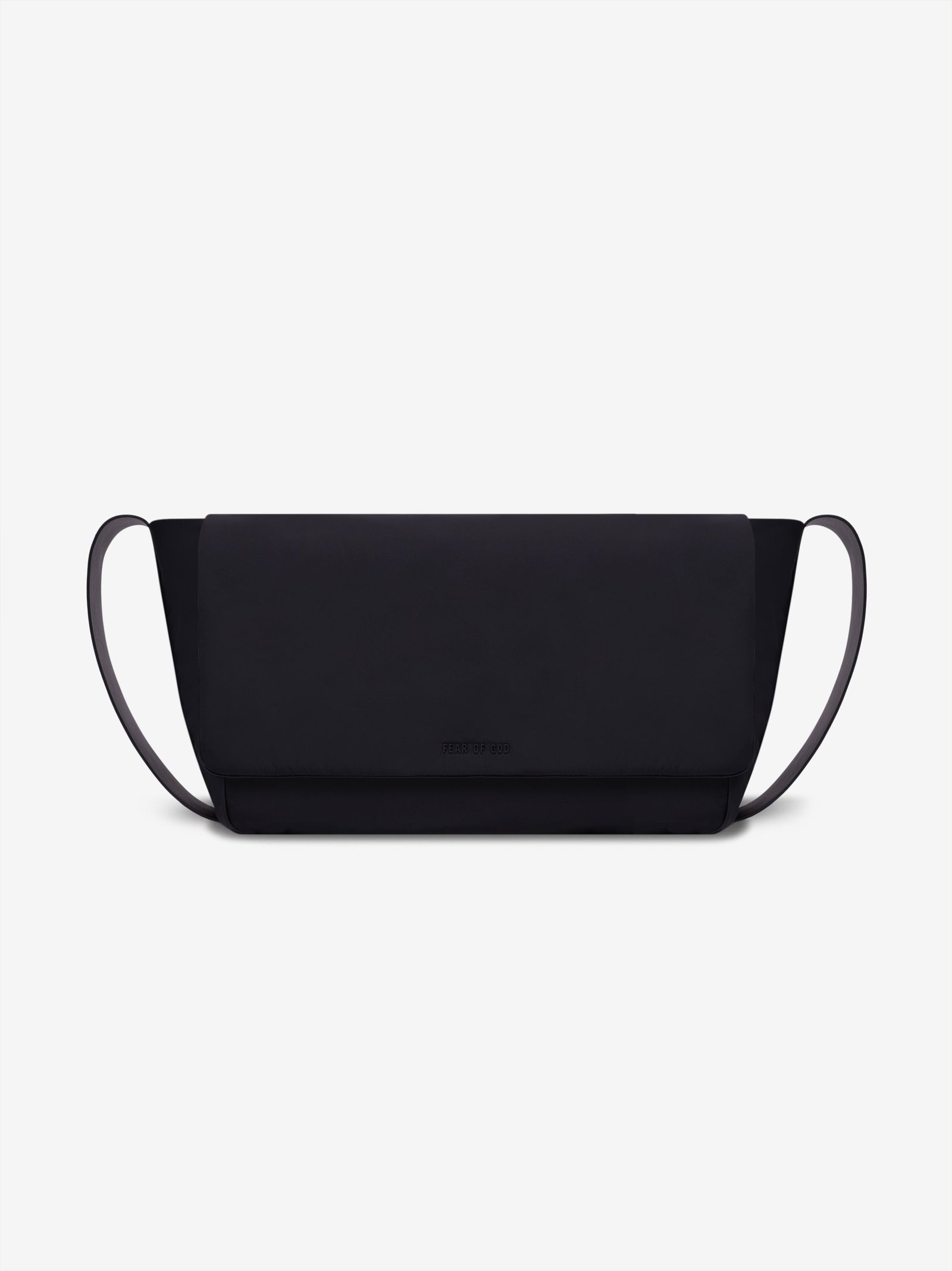 The modern, minimalist newspaper bag is elevated through luxury nylon. Clean, sophisticated design with minimal hardware creates a timeless piece. The stitch fixed straps are made entirely from Italian leather and a rubberized metal Fear of God logo.