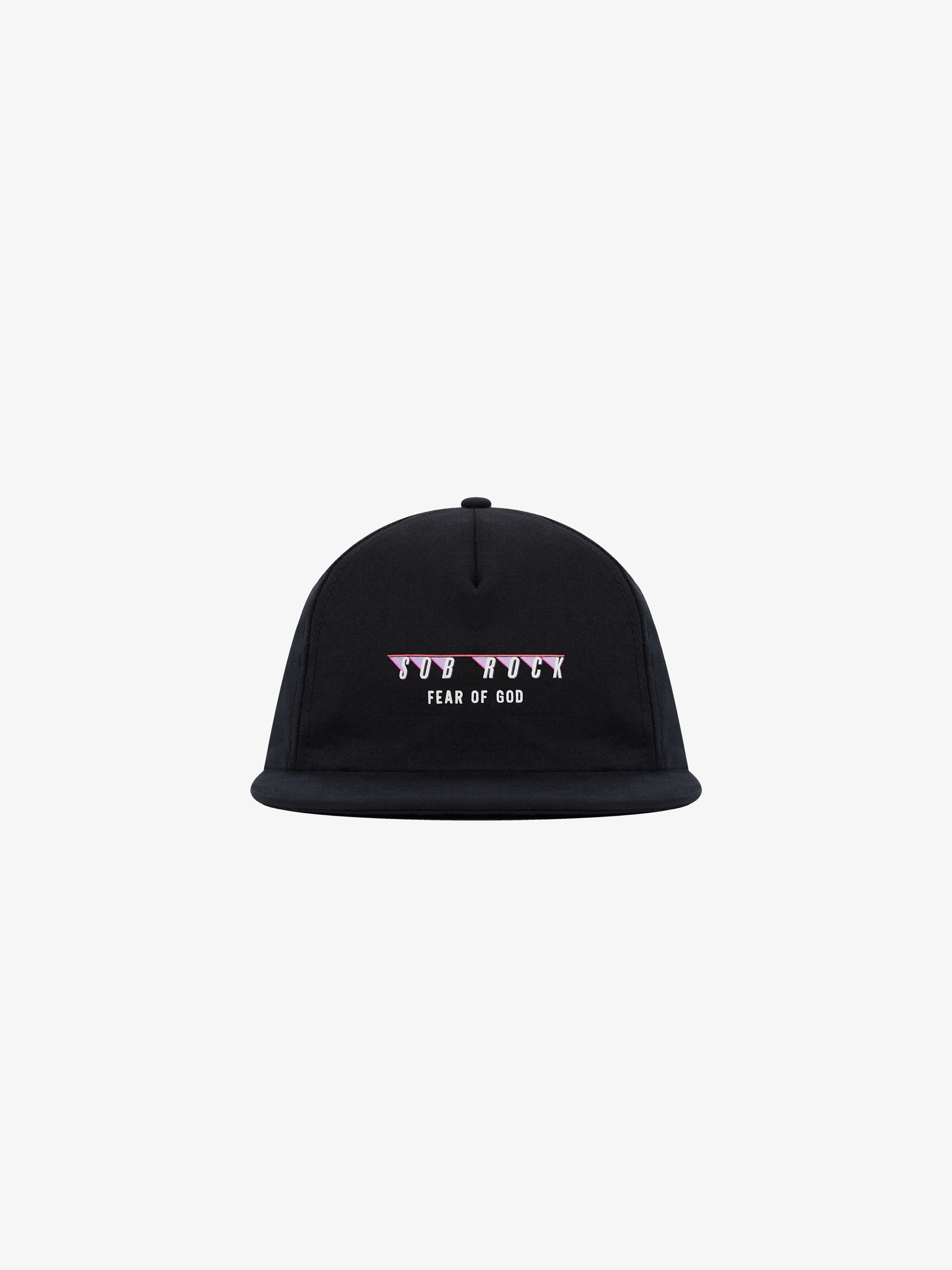 The limited edition souvenir hat is designed by Fear of God and handcrafted in the USA exclusively for John Mayer’s Sob Rock North American Tour 2022. The Sob Rock x Fear of God graphic is across the front panel. The cotton twill hat introduces an oversized velcro strap with the leather Fear of God label at the back to adjust sizing.