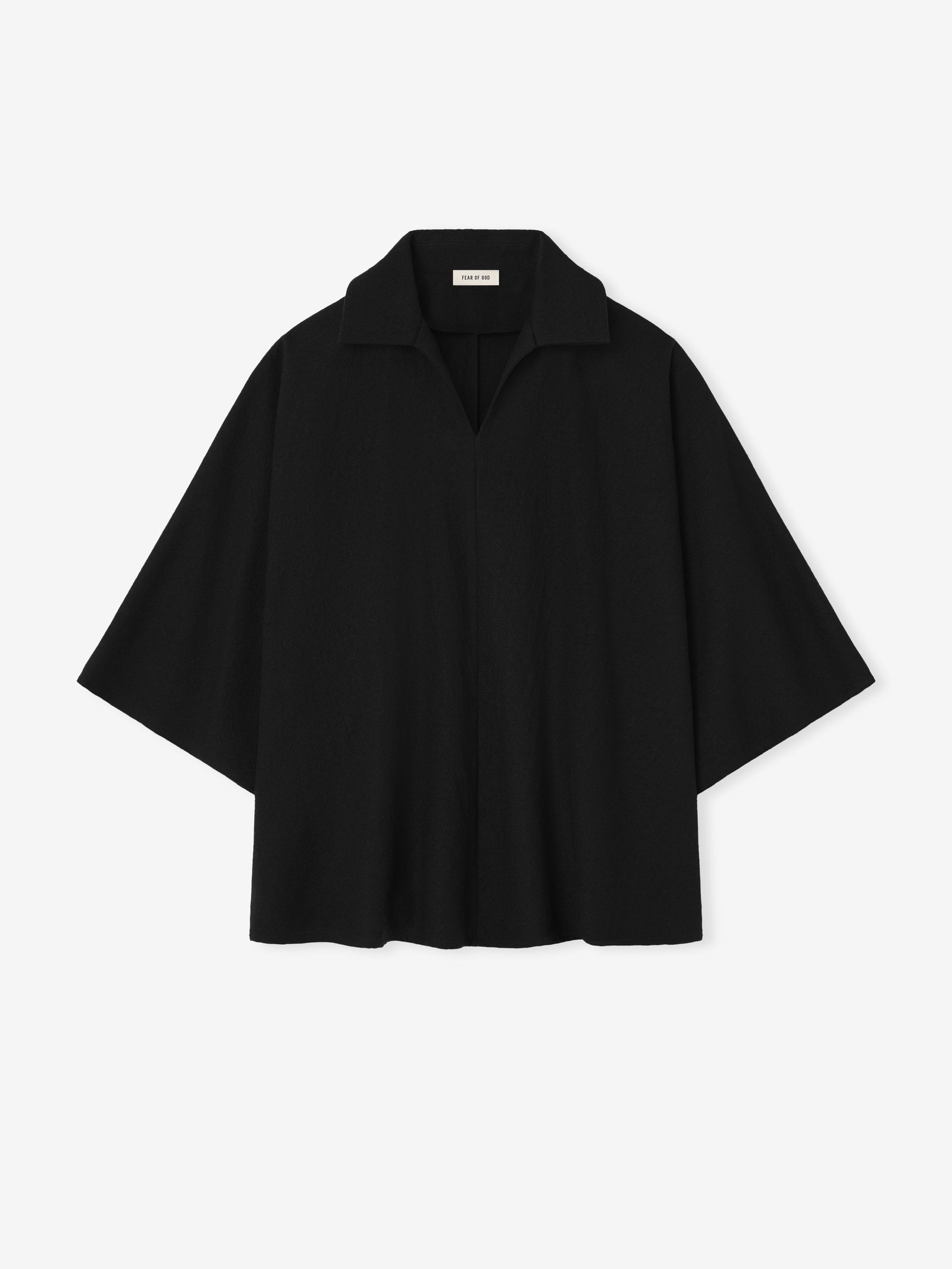 The Polo Shirt is crafted in Italy from virgin wool to provide subtle texture with structure. It is designed with a deep v-neck placket, volume in the body, and 3/4 sleeves, creating a relaxed silhouette.