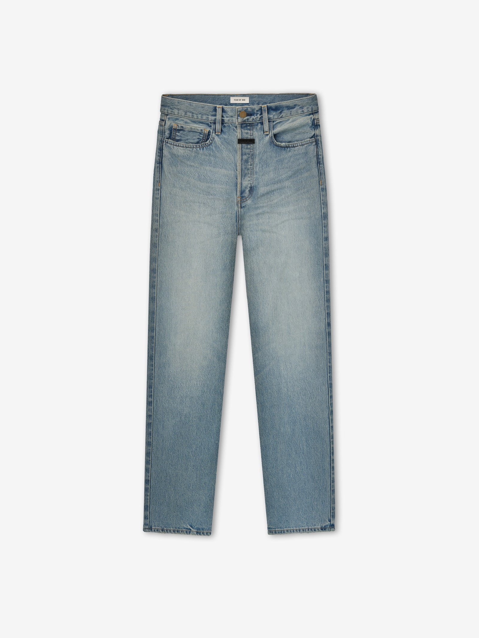 The Straight 5 Pocket Jean is crafted in Japan from 100% cotton denim and features a light indigo wash with hand distressing. This five pocket jean is designed with a relaxed, straight leg for timeless style and everyday comfort. Additionally, there is a Fear of God label located at the center front.