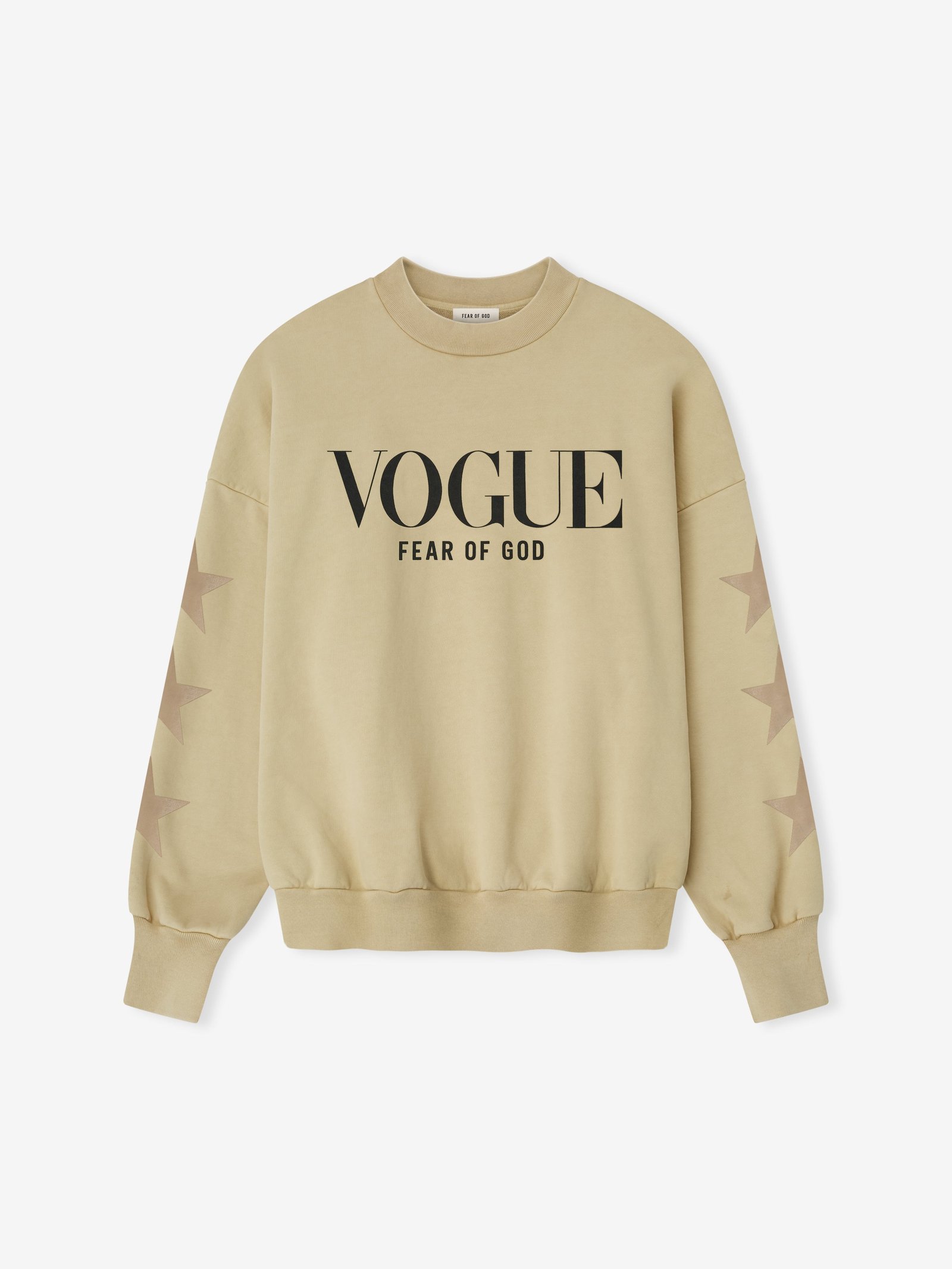 The Vogue Fear of God Neighborhood Crewneck is crafted in the USA from 100% heavyweight cotton fleece and features a sunfade wash with hand-distressing for an authentic vintage appearance. Hand-printed graphics feature the Vogue Fear of God lockup across the chest, while the neighborhoods of Los Angeles are celebrated on the back—a nod to the city’s cultural landscape. The piece is framed by rib knit crewneck, cuffs, waist hem, and Fear of God label at the back collar.
