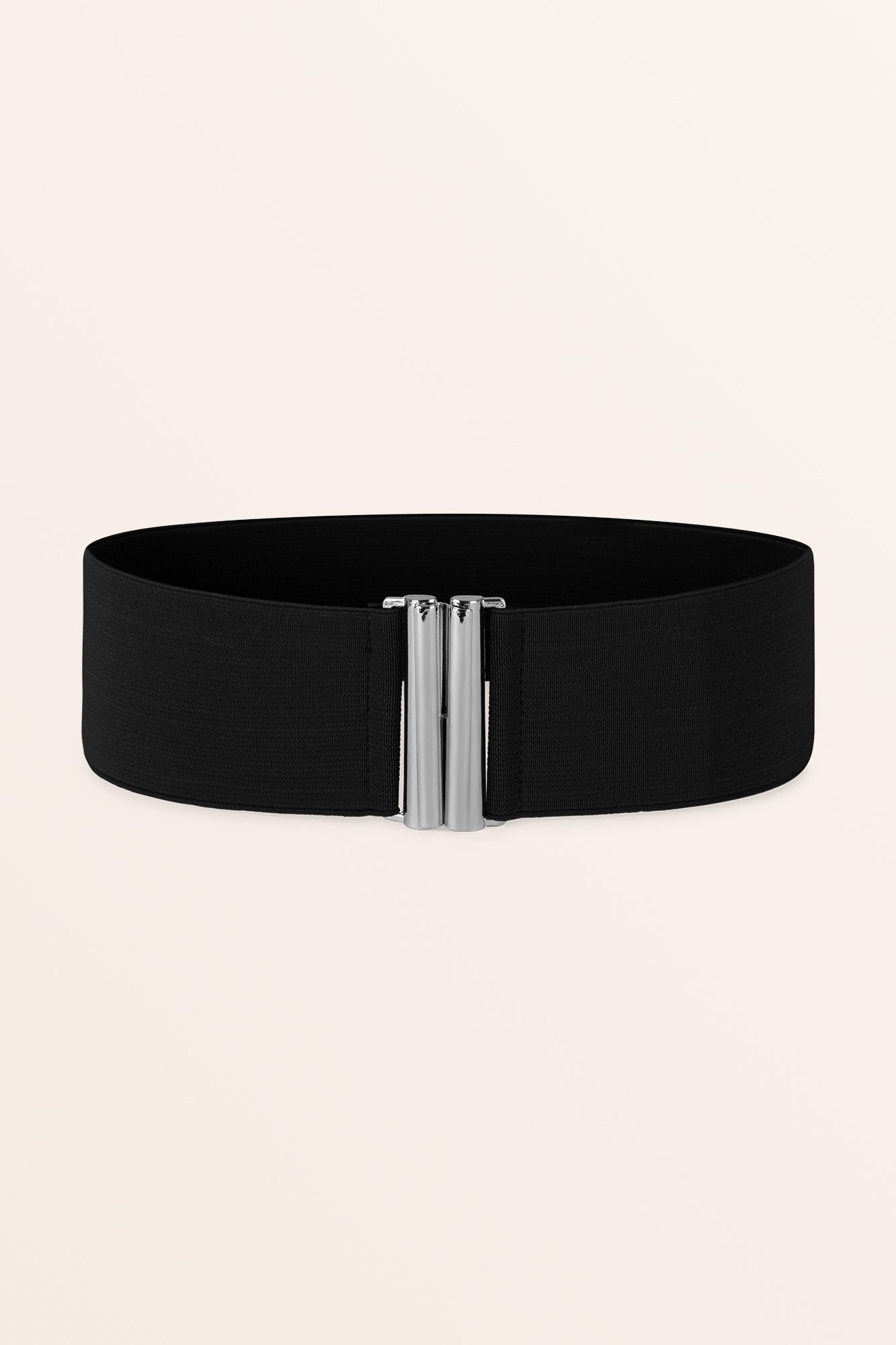 This wide elastic corset belt has a silver vertical hook buckle fastening and because the material is stretchy, it will adjust to many different sizes. The belt is continuous elastic the whole way around. This fashion forward waist belt is sure to provide a great asset to your wardrobe!
