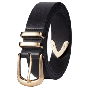 This women’s faux leather belt features a sleek black finish paired with a modern silver buckle, adding a touch of sophistication to any outfit. Soft and comfortable to wear, it’s the perfect accessory for both casual and dressy looks.